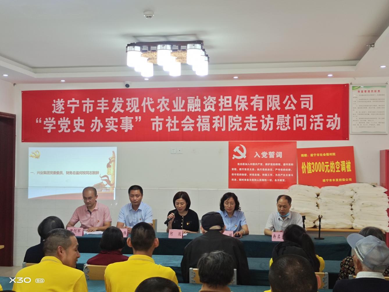 ? ? ? ? 6月18日,市豐發(fā)擔(dān)保公司積極開展“我為群眾辦實(shí)事”活動(dòng)。遂寧興業(yè)集團(tuán)黨委委員、財(cái)務(wù)總監(jiān)何玫參加活動(dòng)。? ?