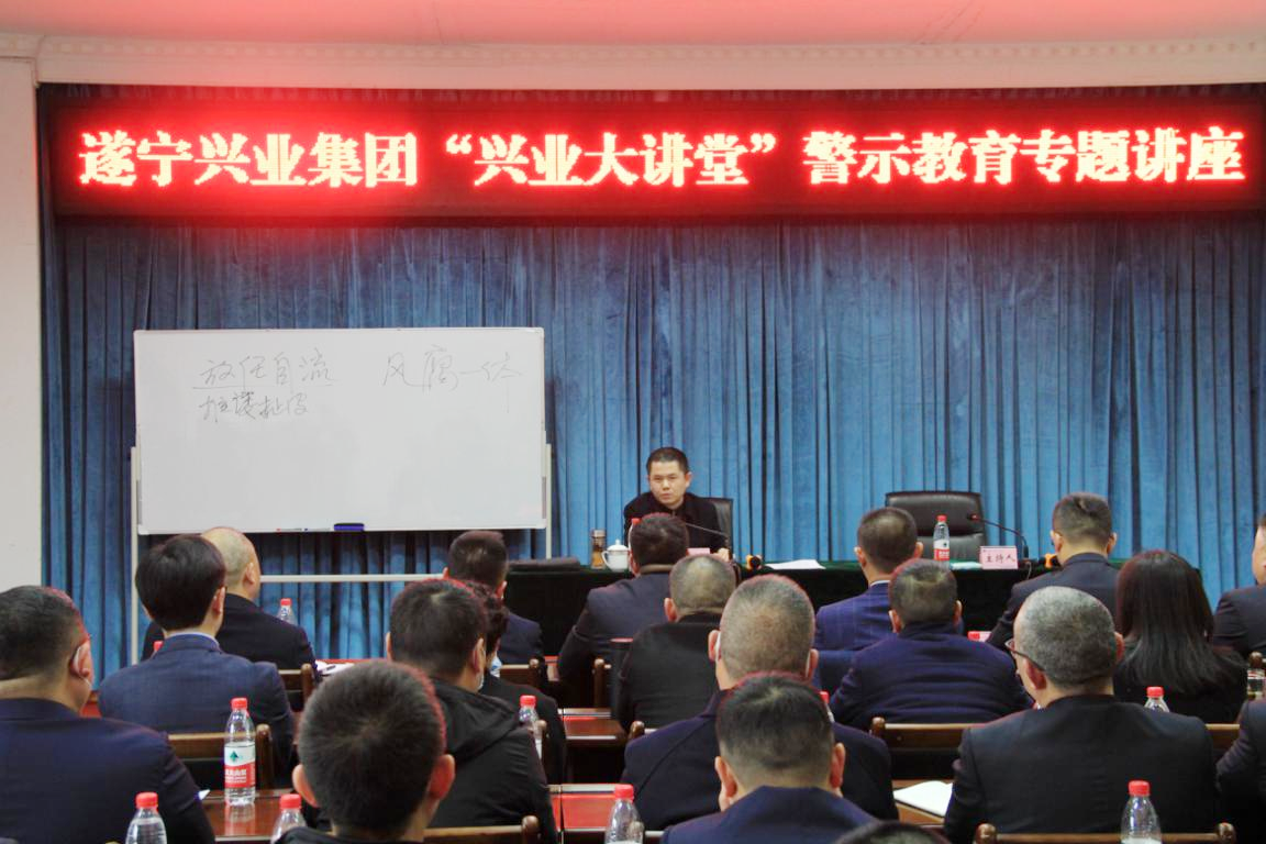 ? ? 11月26日,遂寧興業(yè)集團(tuán)舉辦“興業(yè)大講堂”警示教育專題講座,邀請市紀(jì)委副書記、市監(jiān)委副主任韓麟主講授課。集團(tuán)領(lǐng)導(dǎo)班子成員、中層干部及部分職工代表、各直屬企業(yè)高管共60人參加講座。